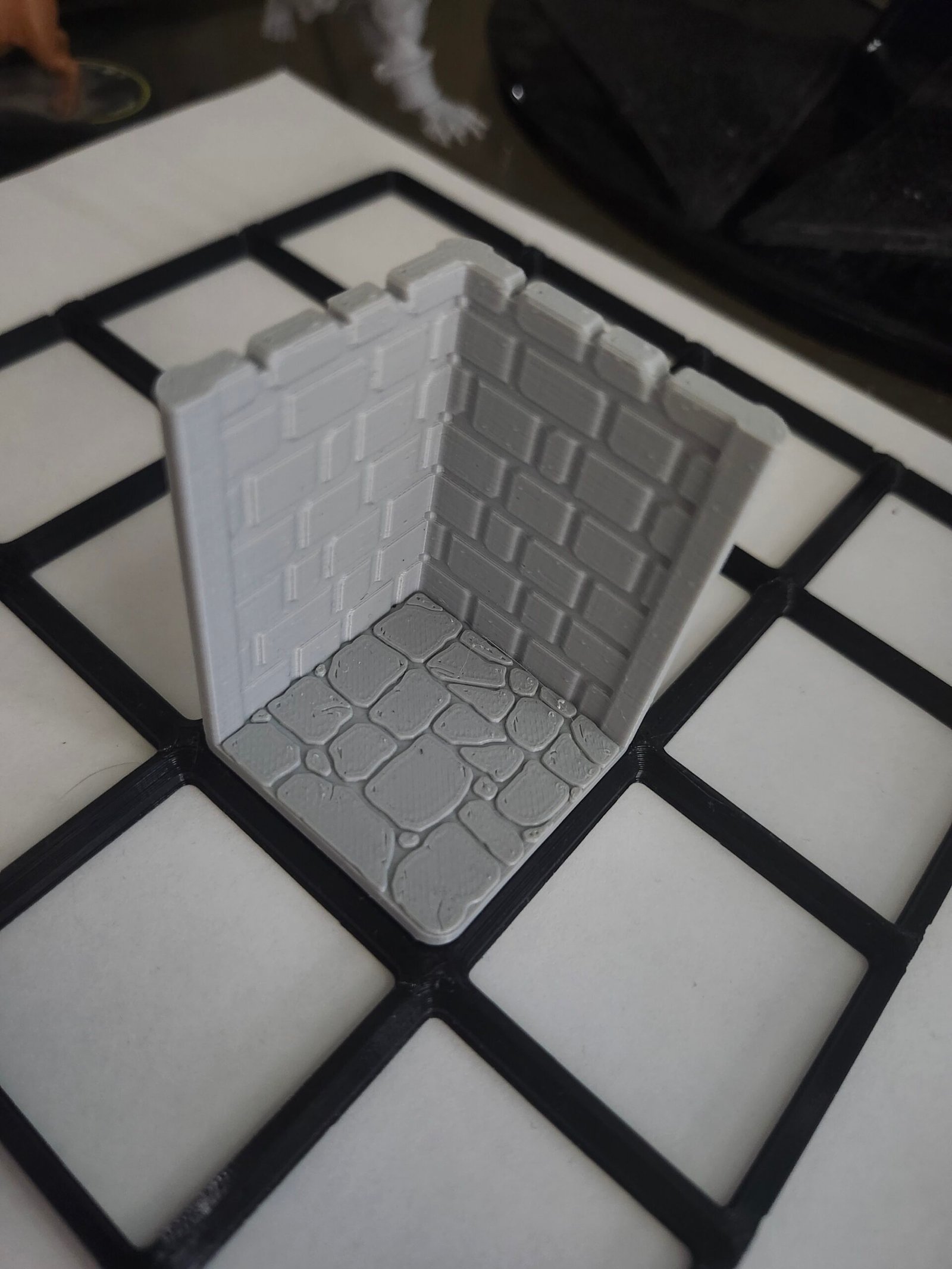 The third print was a Gridfinity Compatible Dungeon Wall Corner for tabletop RPG terrain.